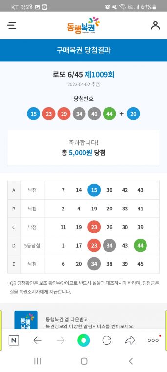 자동과 오빠의 자동분석 방송보고 조합한거에서 총5등 3개 당첨이네요~~ 다음주는 조금더 열심히 조합을 해봐야겠어요~