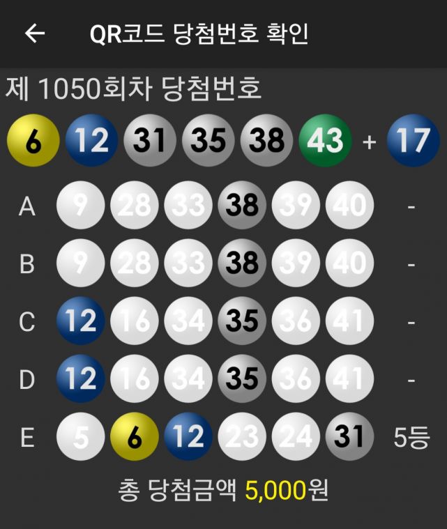개인조합 5등3개당첨^^