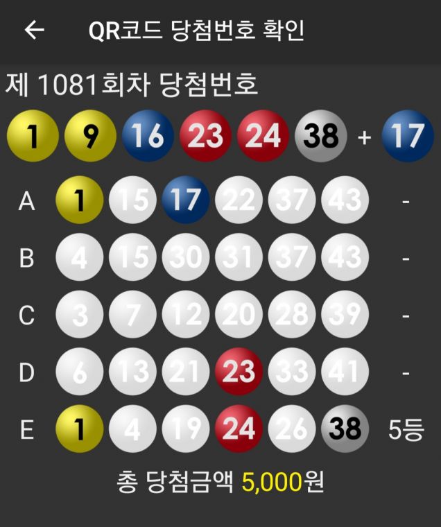 안녕하세요 수호천사입니다^^* 계속5등은하는데 조합이 문제인듯해요ㅎㅎ 5등3개 당첨입니다^^ 대길오빠 3등 진심으로 추카해용^^ 당첨되신모든분들 축하드려요 즐거운 일요일 되세용*^^*